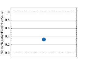 \[\text{Negative Predictive Value} = \frac{\text{TN}}{\text{TN} + \text{FP}}\]Where \(\text{TN}\) and \(\text{FP}\) represent the number of true negatives and false positives respectively. The metric is only proper defined when \(\text{TN} + \text{FP} \neq 0\). If this case is encountered a score of 0 is returned.