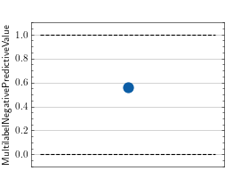 \[\text{Negative Predictive Value} = \frac{\text{TN}}{\text{TN} + \text{FN}}\]Where \(\text{TN}\) and \(\text{FN}\) represent the number of true negatives and false negatives respectively. The metric is only proper defined when \(\text{TN} + \text{FN} \neq 0\). If this case is encountered for any label, the metric for that label will be set to 0 and the overall metric may therefore be affected in turn.