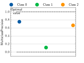 >>> from torch import randint >>> # Example plotting a single value per class >>> from torchmetrics.classification import MulticlassPrecision >>> metric = MulticlassPrecision(num_classes=3, average=None) >>> metric.update(randint(3, (20,)), randint(3, (20,))) >>> fig_, ax_ = metric.plot()