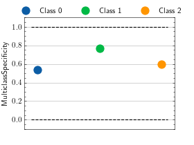 >>> from torch import randint >>> # Example plotting a single value per class >>> from torchmetrics.classification import MulticlassSpecificity >>> metric = MulticlassSpecificity(num_classes=3, average=None) >>> metric.update(randint(3, (20,)), randint(3, (20,))) >>> fig_, ax_ = metric.plot()