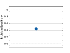 >>> from torch import tensor >>> from torchmetrics.classification import MultilabelSpecificity >>> target = tensor([[0, 1, 0], [1, 0, 1]]) >>> preds = tensor([[0, 0, 1], [1, 0, 1]]) >>> metric = MultilabelSpecificity(num_labels=3) >>> metric(preds, target) tensor(0.6667) >>> mls = MultilabelSpecificity(num_labels=3, average=None) >>> mls(preds, target) tensor([1., 1., 0.])